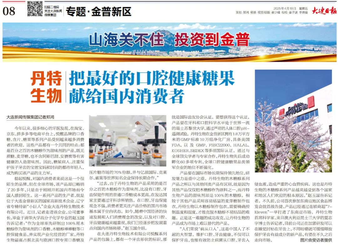 大连日报:丹特生物 把最好的口腔健康糖果献给国内消费者