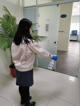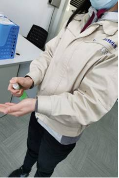 4.内部管理到位。公司实施封闭管理,严禁无关人员进入本企业;外来人员需检测体温、佩戴防护措施、洗手消毒后方可进入,每日对所有进入本企业的人员进行体温探测。对因需要乘坐公共交通上下班的员工提供宿舍或采取网上办公、视频会议等措施,对食堂就餐人员采取分散就餐的方式降低人员流动和集聚风险,对车间、食堂、办公室等公共区域每天定期消毒。