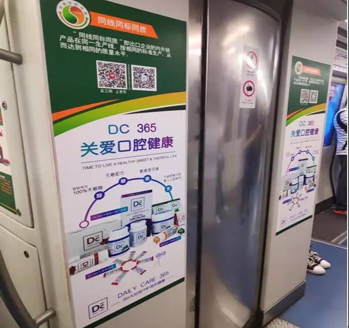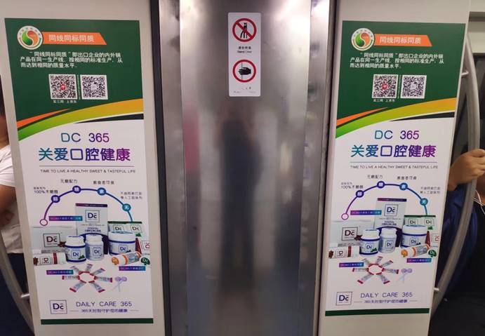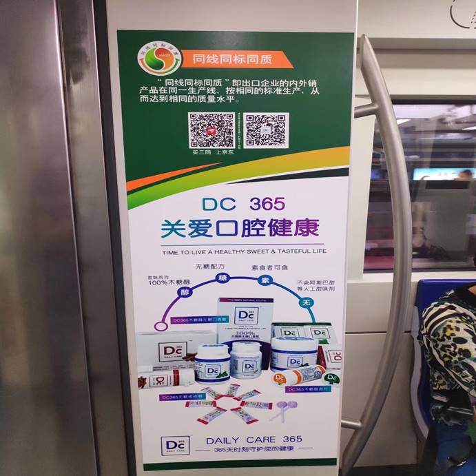 2018年9月,国家出口产品内外销“同线同标同质”促进联盟联合京东和北京地铁公司共同推出“京东质量月”暨“三同食品宣传推广月”活动。大连丹特生物技术有限公司公司高端口腔健康产品DC365系列产品,突破重重严格审查及评选,有幸于2018年九月中旬至十月中旬在京东网站和北京地铁2号线、10号线和8号线的车厢里进行集中展示。