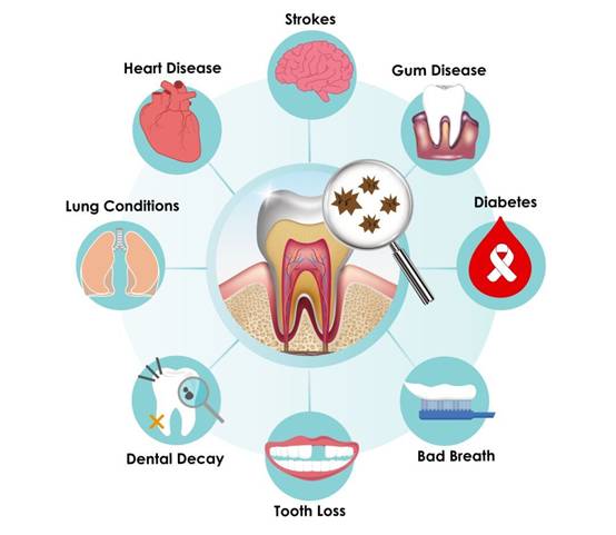 口腔疾病有许多形式,最常见的是龋病和牙龈疾病。如果管理不当,可能会对身体的其他部分产生负面影响,这就是为什么口腔健康对各年龄段人群的全身健康和幸福至关重要。全身健康状况也会增加口腔问题的风险。例如,口腔疾病与糖尿病、心脏病、呼吸系统疾病和一些癌症有关,患糖尿病会增加患牙周疾病的风险。